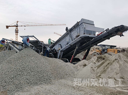 重慶履帶移動(dòng)石子機(jī) 現(xiàn)場 日吞2000噸混凝土塊
